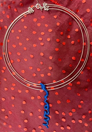 Hand-modelled jewel, made of rhodium-plated and blue enamelled silver. The jewel was born from the work "Family" 2020 installation. "Uranus", a stellar distance... sometimes necessary to be able to see the whole.
